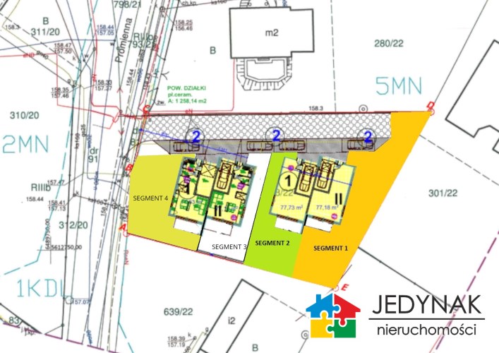 Oferujemy do zakupu segment lewy (segment 3) budynku dwulokalowego, posadowiony na pięknie nasłonecznionej działce o powierzchni około 2 ara. Inwestycja ma charakter kameralny, realizowana jest w cichej części Opola, w dzielnicy Chmielowice, przy luźno zabudowanej ulicy Promiennej (dojazd drogą asfaltową).