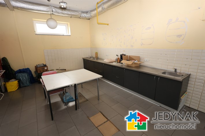 - Parter: Sala sprzedaży/produkcji/open space, zaplecze, WC dla pracowników/klientów, pomieszczenia socjalne i komunikacja