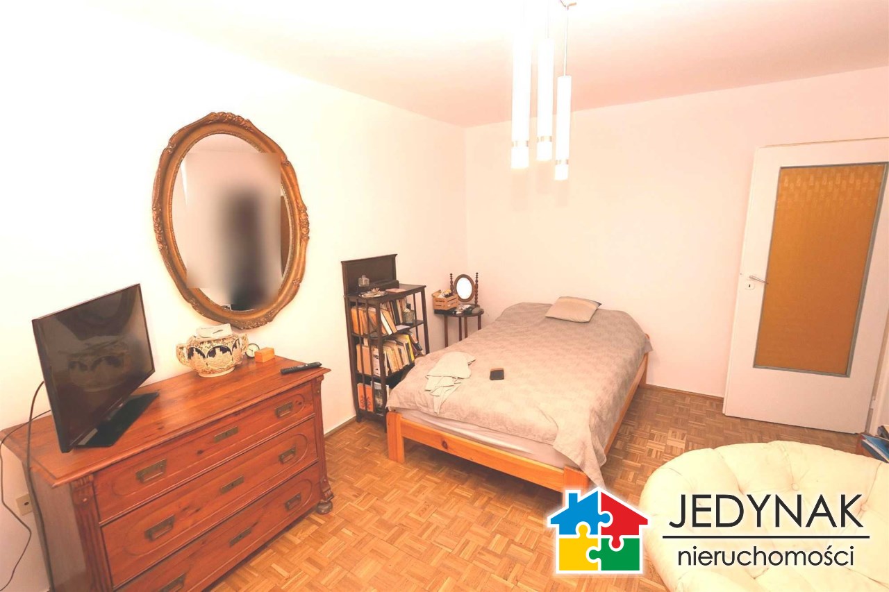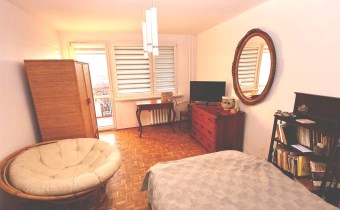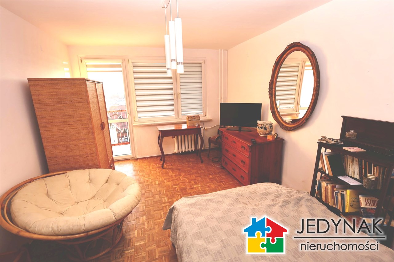 • Salon z klimatem: Przestronny pokój dzienny z oryginalnym parkietem w jodełkę, który nadaje wnętrzu charakteru. Z salonu wyjście na balkon, z którego rozpościera się widok na okoliczną architekturę.