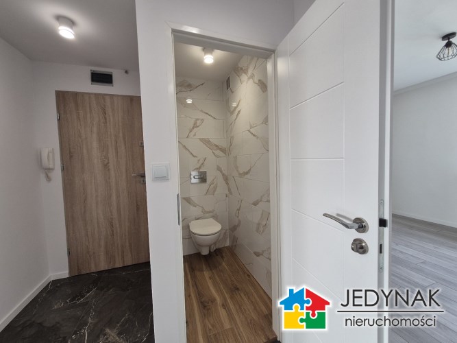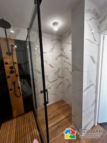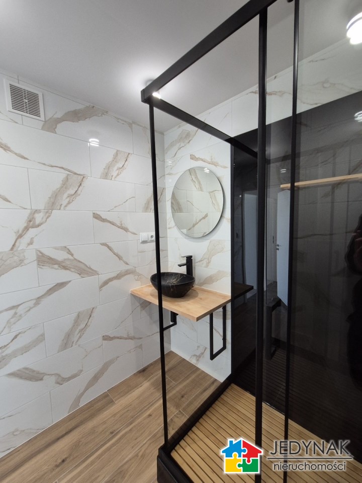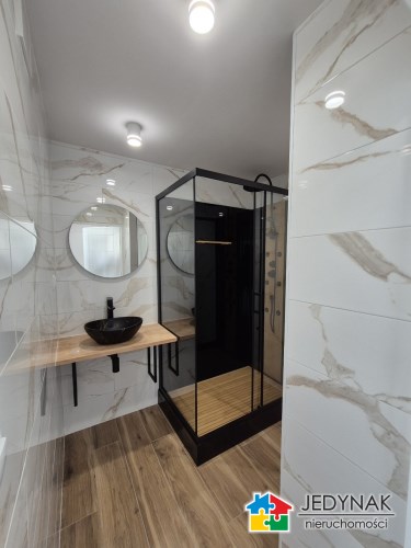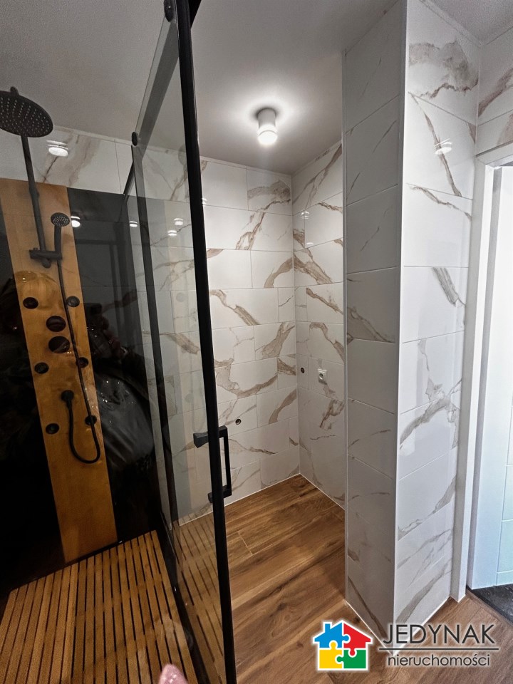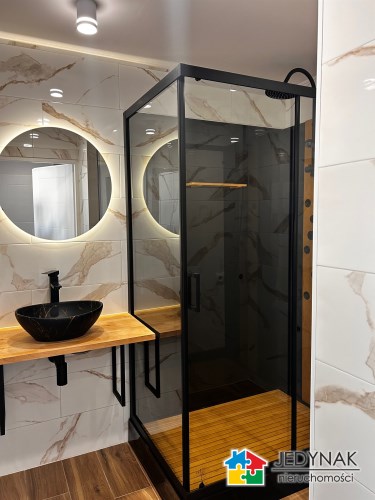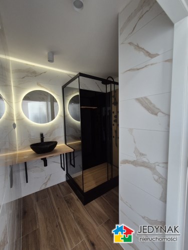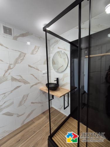 Piękna łazienka z dużą kabiną prysznicową, osobno toaleta.