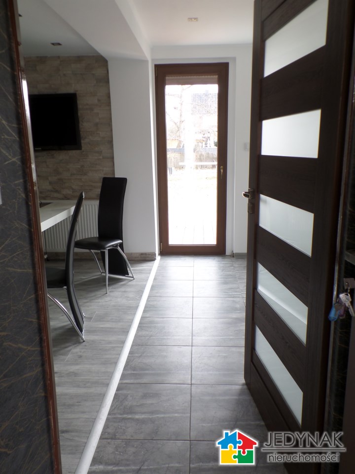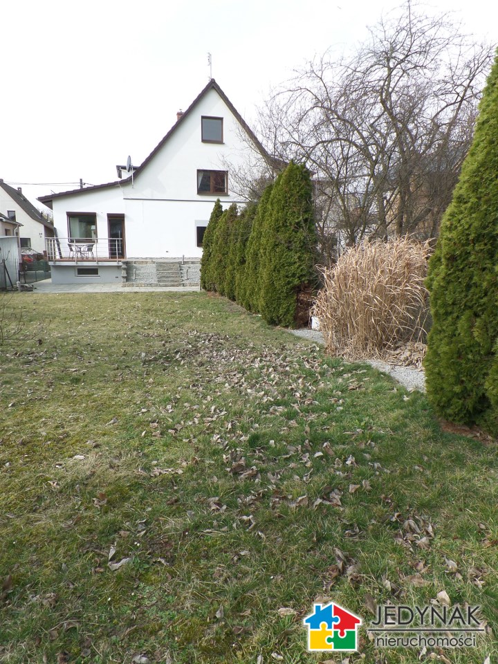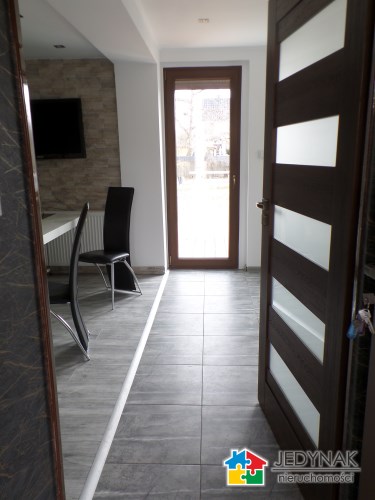 Ok. pół domu - wydzielone mieszkanie o pow. 99,44m2 położone na parterze budynku ( 2 lokalowego ) 4pokoje , kuchnia , łazienka , kominek, taras z zejściem do ogrodu ( pow. gruntu do mieszkania ok. 4a ) , piwnice , powierzchnia garażowa. Standard do odświeżenia , ogrzewanie / ciepła woda - piec gazowy.