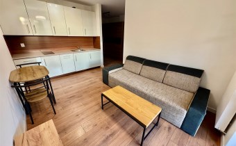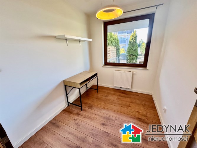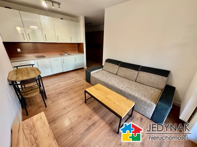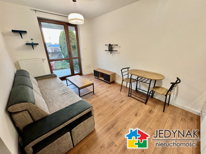 Do wynajęcia ładne mieszkanie z ogródkiem, komórką i miejscem postojowym w garażu podziemnym, położone w Opolu przy ul. Tęczowej. Mieszkanie o powierzchni 33,35m2, składa się z salonu z aneksem kuchennym co tworzy spójną, przytulną przestrzeń do odpoczynku i pracy, niedużej sypialni, łazienki z WC i przedpokoju. Mieszkanie częściowo umeblowane, aneks kuchenny w pełni wyposażony (lodówka podblatowa, zmywarka) w sypialni na wyposażeniu nie ma łóżka. Ogrzewanie i ciepła woda z sieci miejskiej. W cenie mieszkania komórka oraz miejsce parkingowe w garażu podziemnym, co gwarantuje wygodę i bezpieczeństwo niezależnie od pogody. Spokojna, dobrze skomunikowana okolica z dostępem do sklepów, usług oraz komunikacji miejskiej. Wymagana kaucja jednomiesięczna. Cena wynajmu to 2000zł + opłaty (ok 700zł).