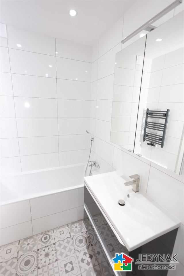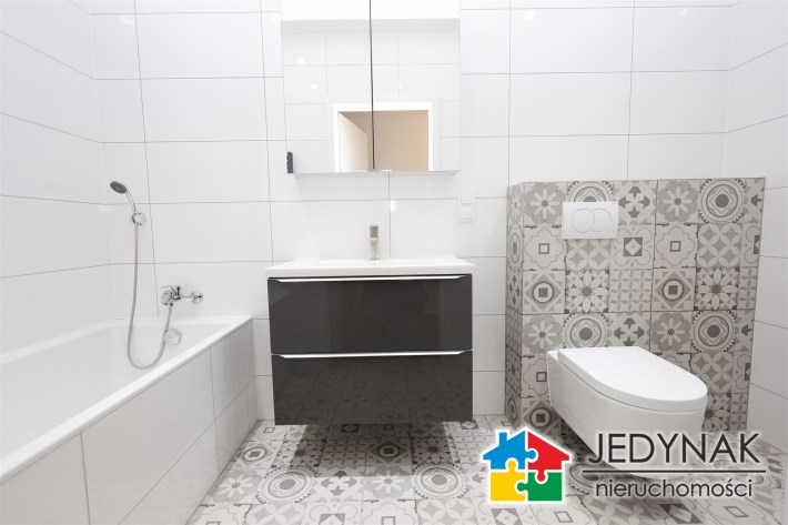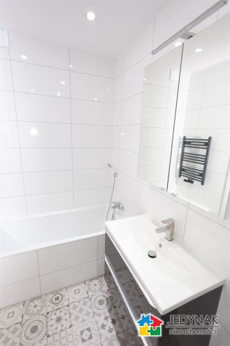 Łazienkę z wanną: Nowocześnie urządzona, zapewniająca komfort użytkowania.